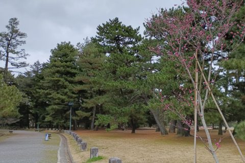 久しぶりに行ってみると、南の門から入ってすぐの所に、もう桜が咲き始めていました🌸