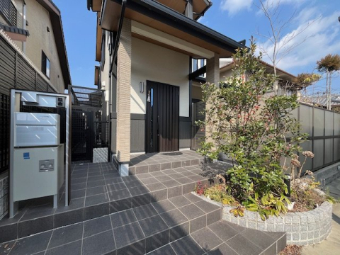 低層住宅が立ち並ぶ閑静な住宅地の一角、幅員約6.0mの道路に南向きに面した本物件。まず目に飛び込むのは、ブラックカラーが映えるスタイリッシュなカーポート。こちらは「GOOD DESIGN AWARD2017 GOOD DESIGN BEST100」を受賞した【LIXILカーポートSC】。フラットな薄い屋根で、洗練されたデザインです☆