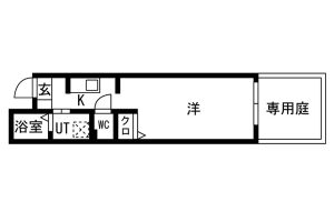 ※101号室・102号室は約7㎡(2坪)の専用庭あり。